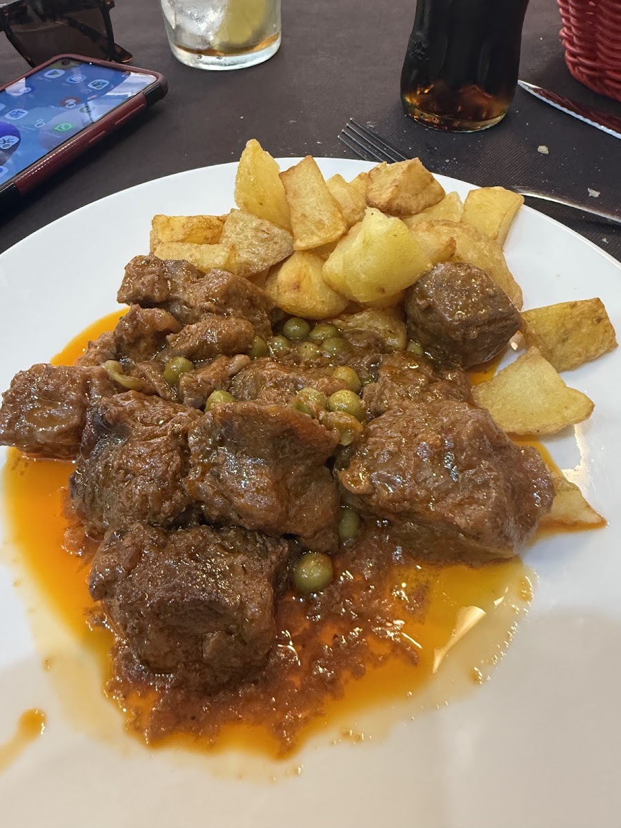 Local Spanish bar/restaurant with a long tradition of service for the local population and visitors alike. Unsurprisingly they speak Spanish but do have some staff who can help out in English. The staff are all very attentive without being overbearing and will do their very best to help. Locals use this place so booking for meals is advisable but not necessary. The food we had was exceptional for the price and arrived in copious amounts, so much so, we asked for a bag to carry out, no problem and everything without fuss. Drinks are inexpensive, vast choice, and usually arrive with some form of tapas, the tapas is free and accompanies a beer or glass of wine perfectly